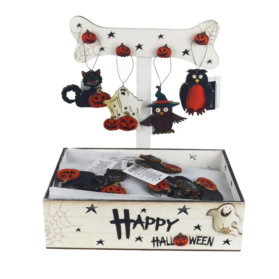 Box halloweenských dekorací k zavěšení. Box obsahuje 72 dekorací, 4 druhy dekorací.