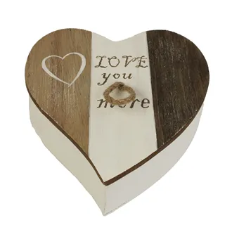 Krásný dřevěný box ve tvaru srdce se srdíčky.