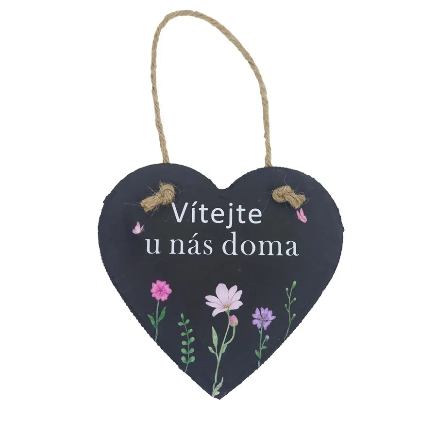 Dekorační břidlicová tabulka k zavěšení srdce.
