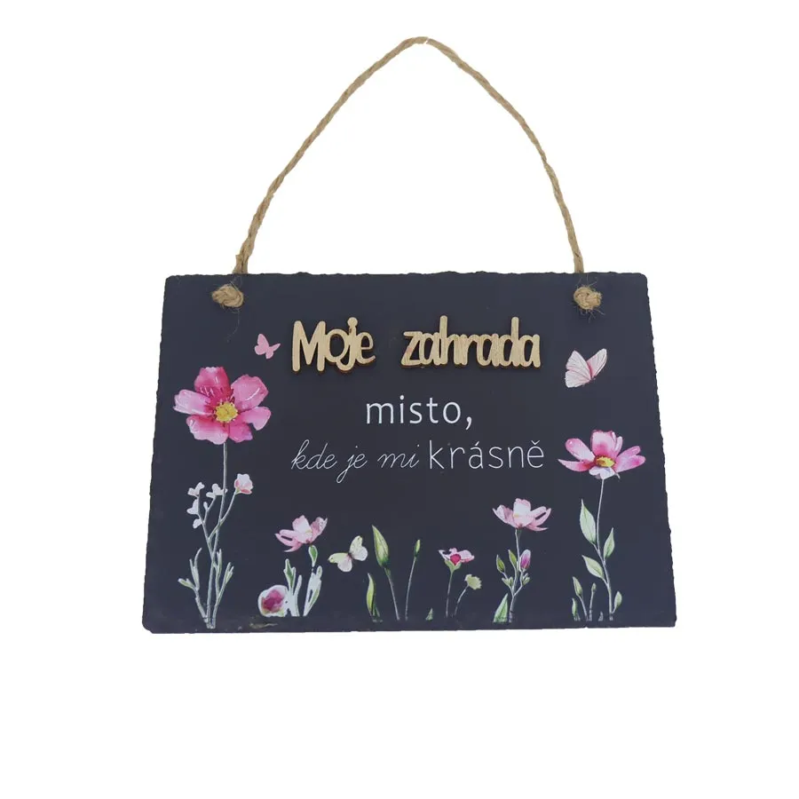Dekorační břidlicová tabulka k zavěšení.