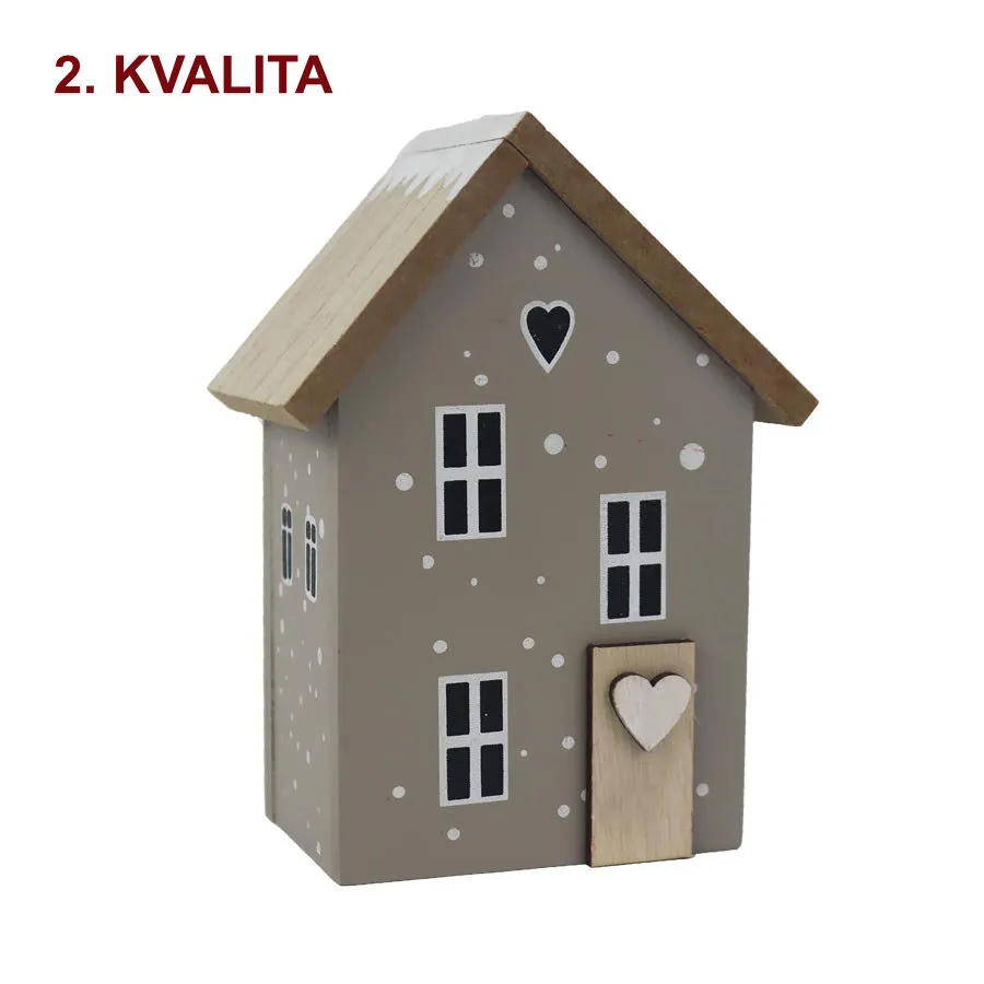 Domeček je ve 2. jakosti, místy polepené, odštípnuté, ze křiva nalepené dveře, poškrábané.