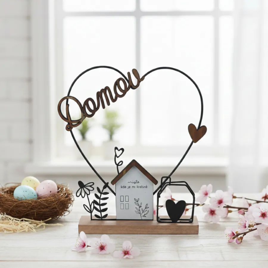 Jarní dekorace s nápisem - Domov místo, kde je mi krásně.