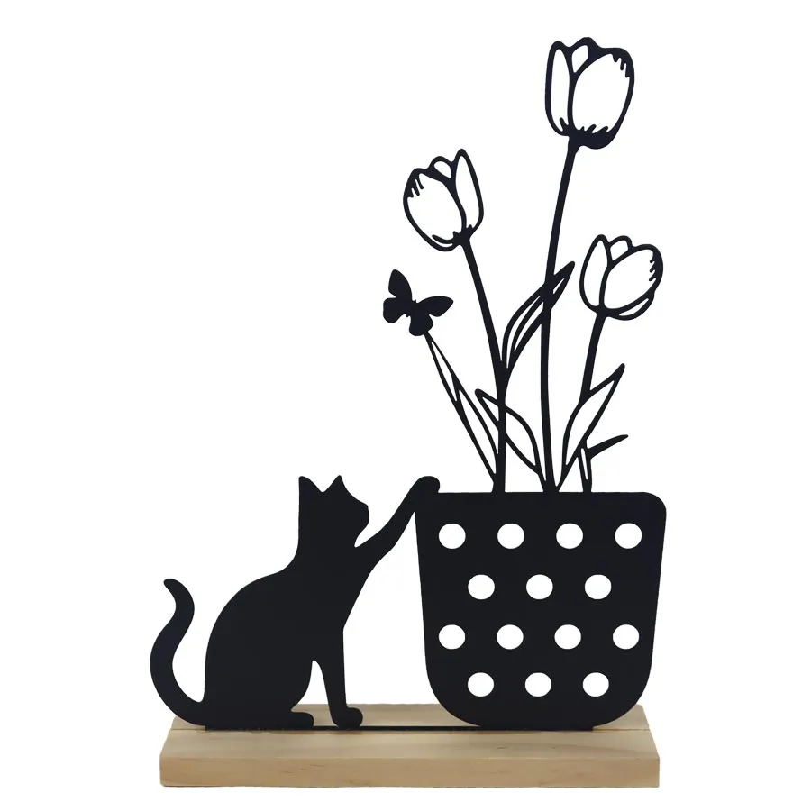 Dekorace kočka s kytkou K4782