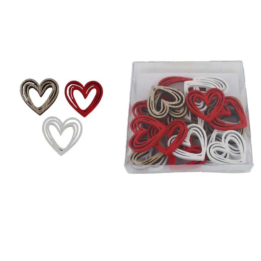 Sada dekoračních srdíček. Sada obsahuje 24 srdíček.