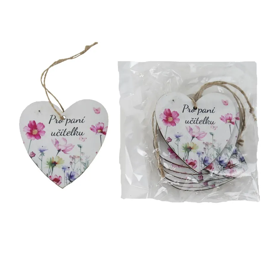Dekorační srdce k zavěšení s nápisem Pro paní učitelku, 10 ks D7879