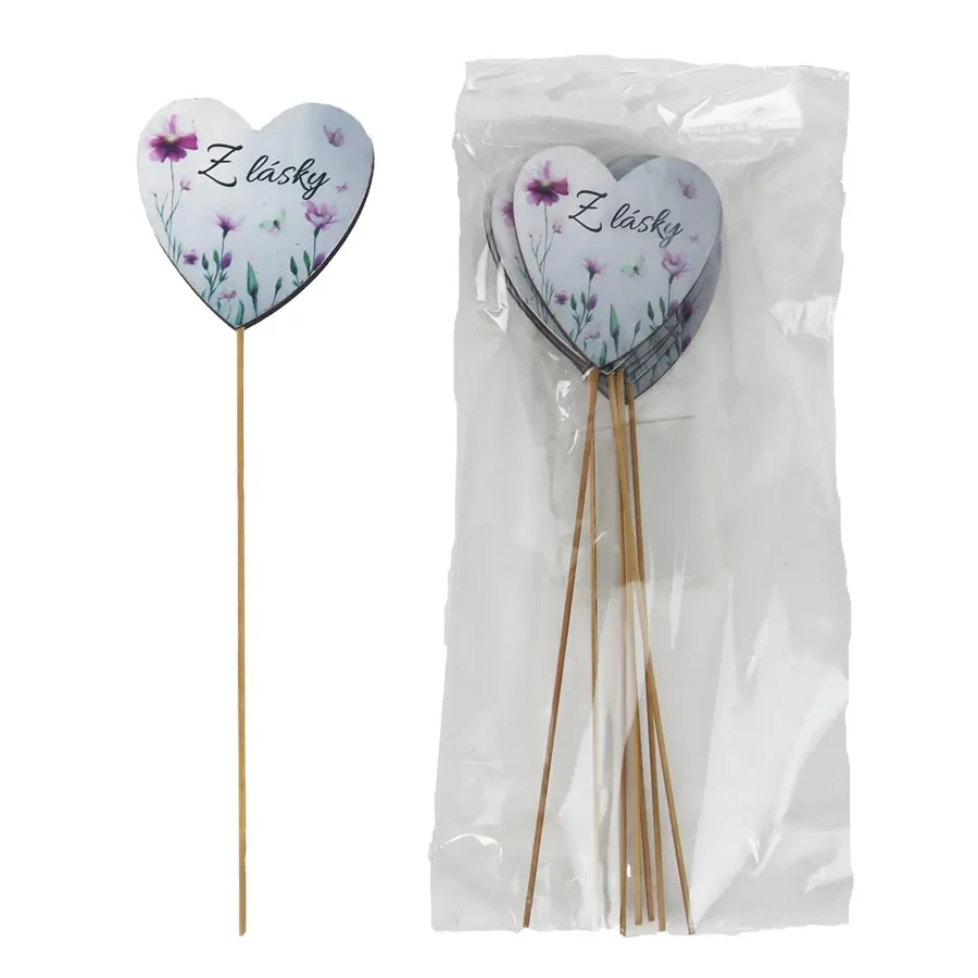 Dekorační zápich srdce s nápisem Z lásky, 8 ks D7876