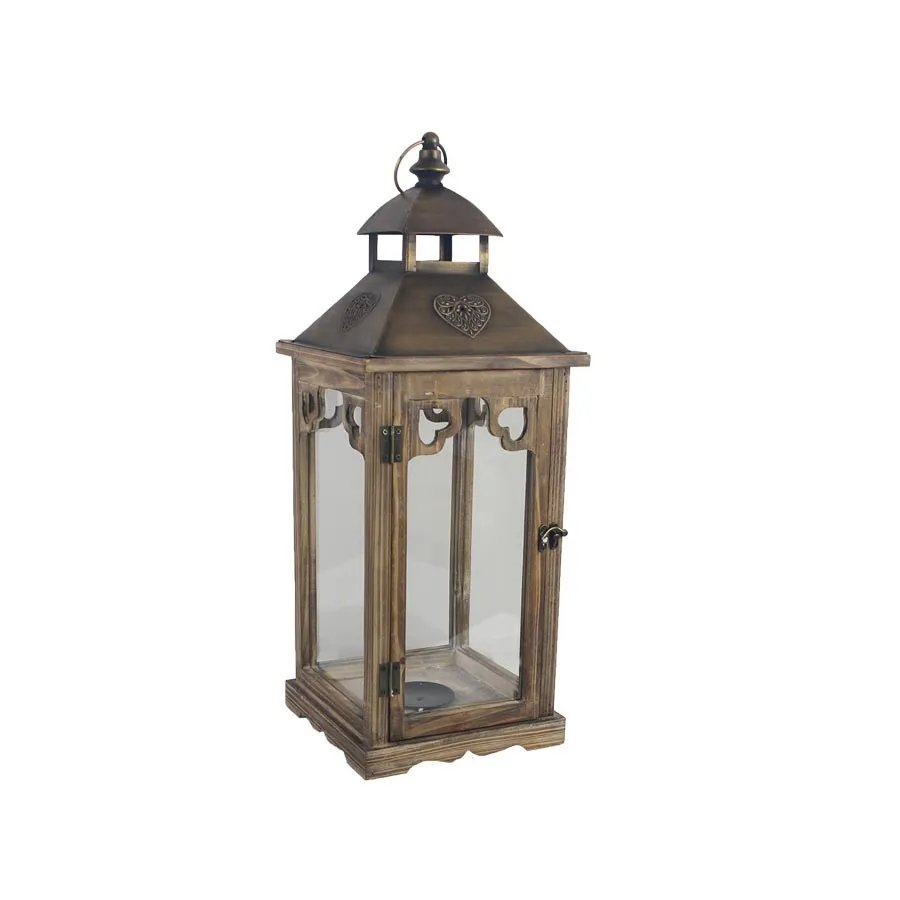Krásná lucerna střední. Rozměry : 23,5 x 23,5 cm, výška 61,5 cm. Barva : hnědá. Materiál : dřevo, sklo, kov. Vneste do svého domova či zahrady kouzlo orientální stylu. Tato lucerna je vyrobena ze dřeva a skleněných panelů, horní část je z kovu. Lucerna má praktickou rukojeť, která vám usnadní její přenášení mezi domem a zahradou.