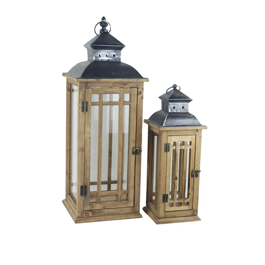 Sada dřevěných luceren. Sada obsahuje 2 lucerny o dvou velikostech. Malá lucerna má rozměry : 16,5 x 16,5 cm, výšku 46,5 cm. Velká lucerna má rozměry : 24 x 24 cm, výšku 68 cm. Vneste do svého domova či zahrady kouzlo orientálního stylu. Tyto lucerny jsou vyrobeny ze dřeva a skleněných panelů, horní část je z kovu. Lucerny mají praktickou rukojeť, která vám usnadní jejich přenášení mezi domem a zahradou.