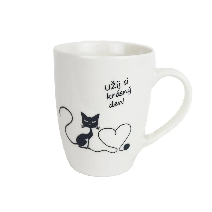 Hrnek kočka s nápisem Užij si krásný den.