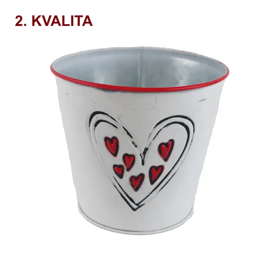 Květináč plechový se srdíčky.