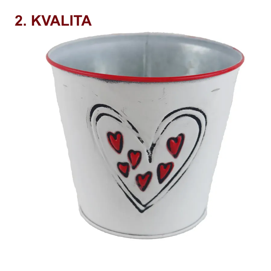 Květináč plechový se srdíčky.