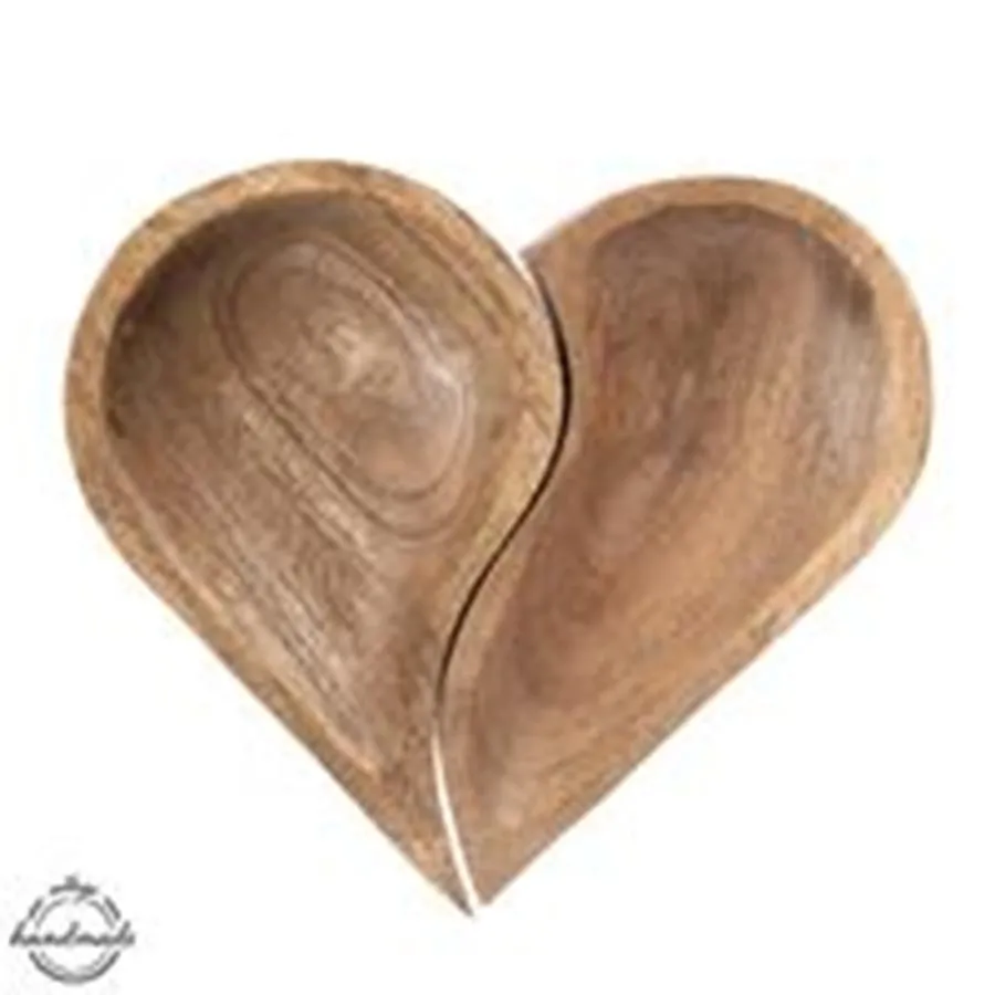 Servírovací miska z přírodního materiálu ve tvaru srdce je rozdělena na 2 samostatné částí.