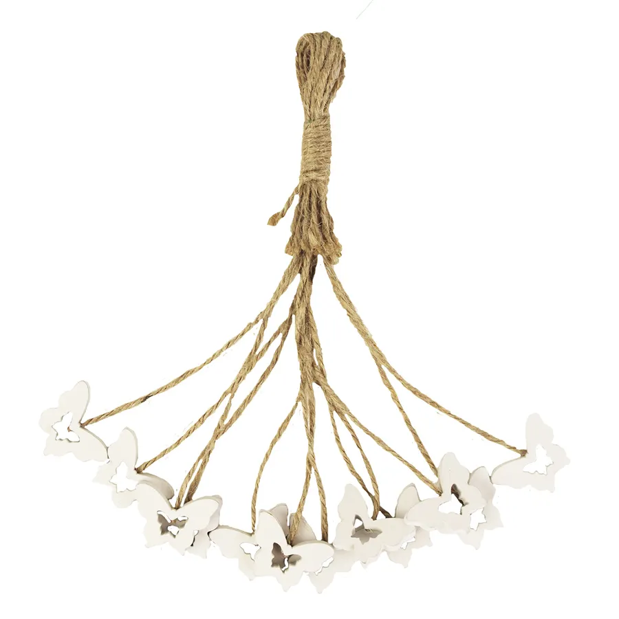 Sada motýlků ve svazku. Svazek obsahuje 12 motýlků. Rozměry : 3 x 0,7 cm, výška 3 cm. Celková délka s provázkem 20 cm. Barva : bílá. Materiál : dřevo.