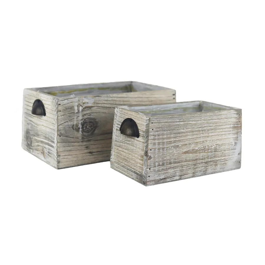 Sada dřevěných obalů s plastem k osázení. Sada obsahuje 2 obaly o dvou velikostech. Malý obal má rozměry : 17 × 9,5 cm, výšku 9 cm. Velký obal má rozměry : 22,5 × 13,5 cm, výška 10 cm.