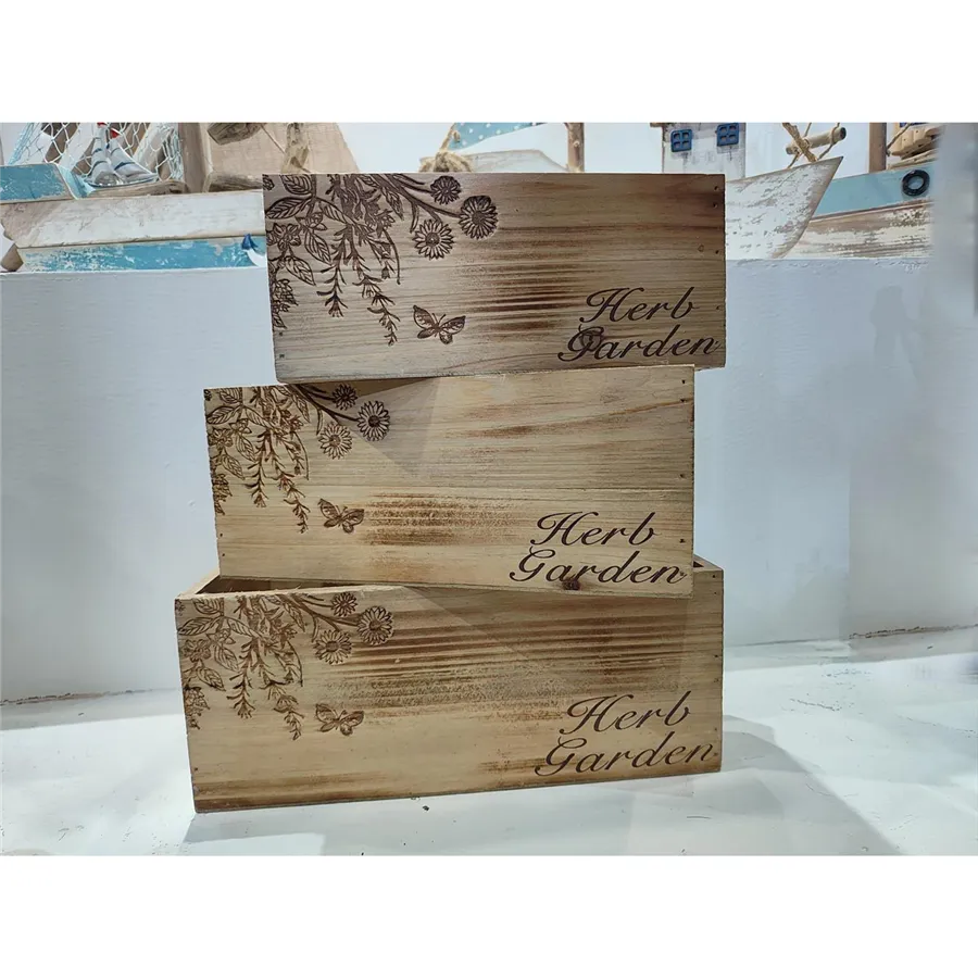 Sada dřevěných obalů s plastem. Sada obsahuje 3 obaly o třech velikostech. Malý obal má rozměry : 21 × 11,5 cm, výšku 8,8 cm. Střední obal má rozměry : 24 × 14.5 cm, výšku 10 cm. Velký obal má rozměry : 27 × 17,5 cm, výšku 11 cm.