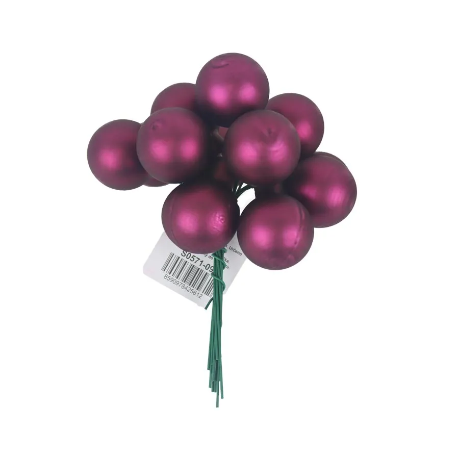 Skleněné baňky na drátku, bordeaux matná, pr.2,5 cm, 12 ks, S0571-09