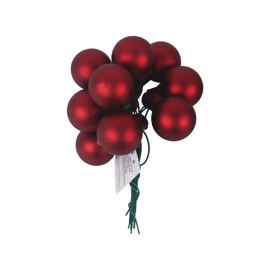 Skleněné baňky na drátku, červená matná, pr. 2,5cm, 12 ks, S0571-34
