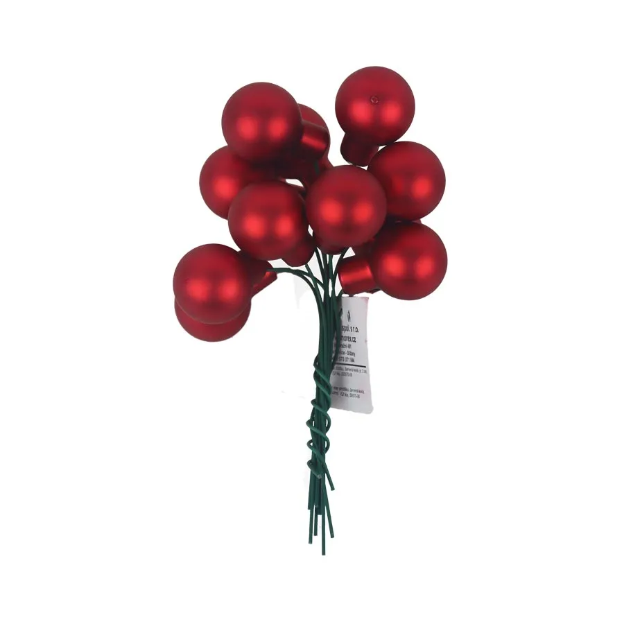 Skleněné baňky na drátku, červená matná, pr. 2 cm, 12 ks, S0570-08