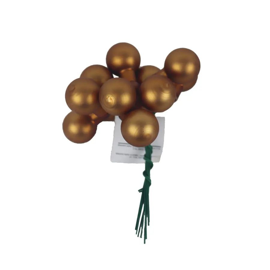 Skleněné baňky na drátku, hnědá matná, pr. 2 cm, 12 ks, S0570-18