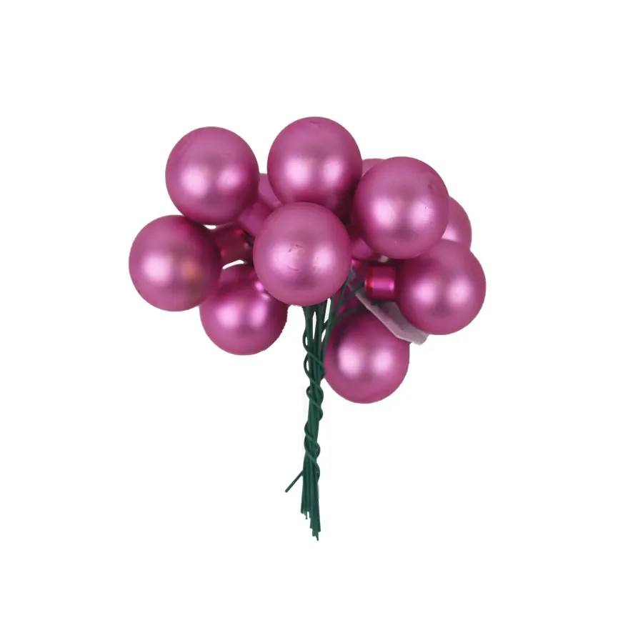 Skleněné baňky na drátku, růžová, pr.2,5 cm, 12 ks, S0571-05