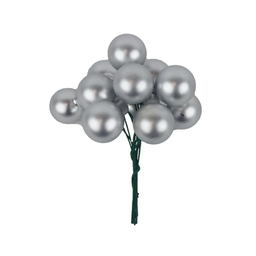 Skleněné baňky na drátku, stříbrná matná, pr.2,5 cm, 12 ks, S0571-28