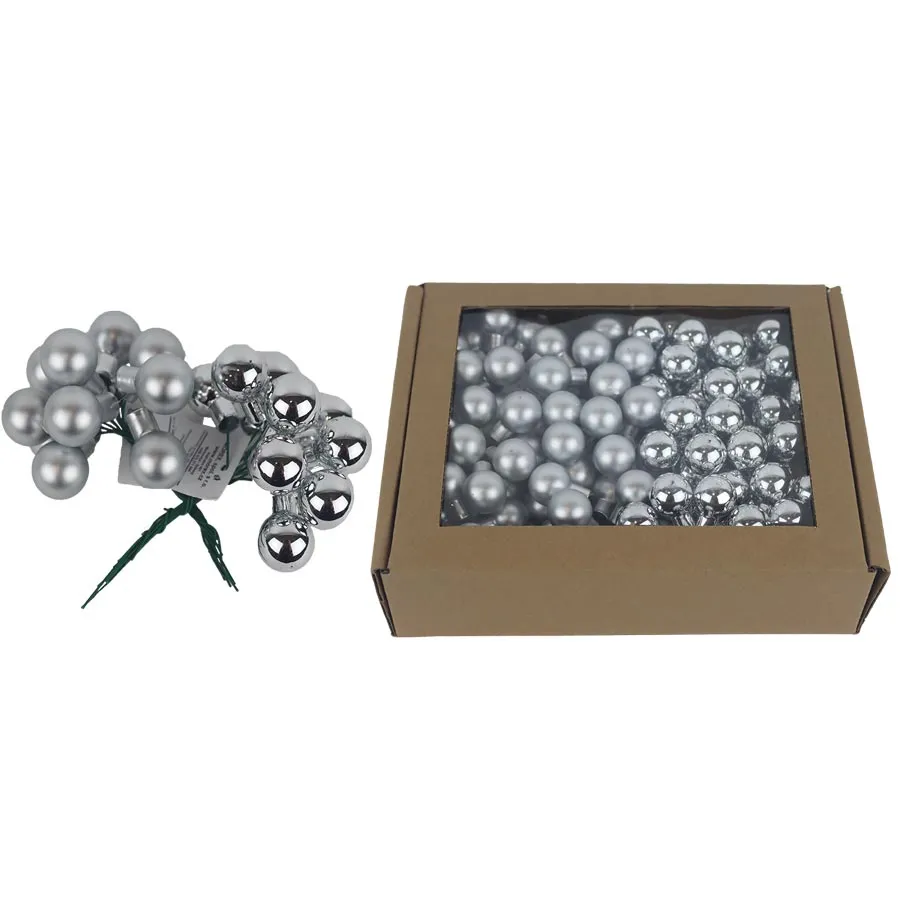 Skleněné baňky na drátku stříbrné, pr. 2cm, S0570-28/BOX 144 ks