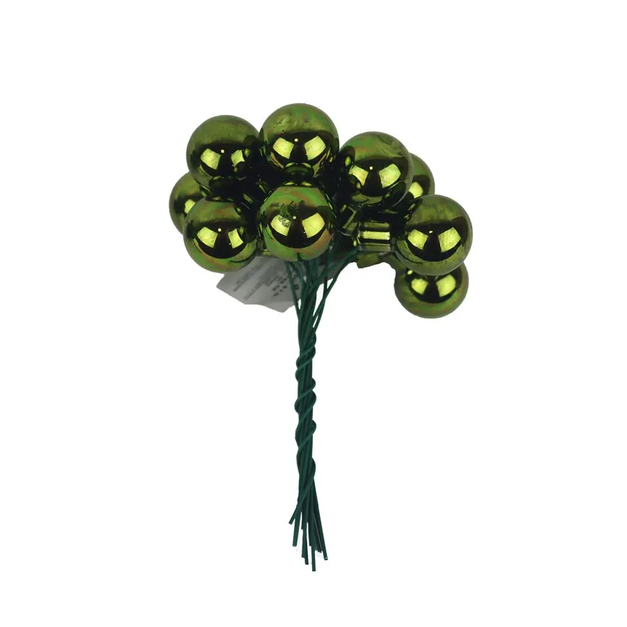 Skleněné baňky na drátku, zelená lesklá, pr. 2 cm, 12 ks, S0570-16/L