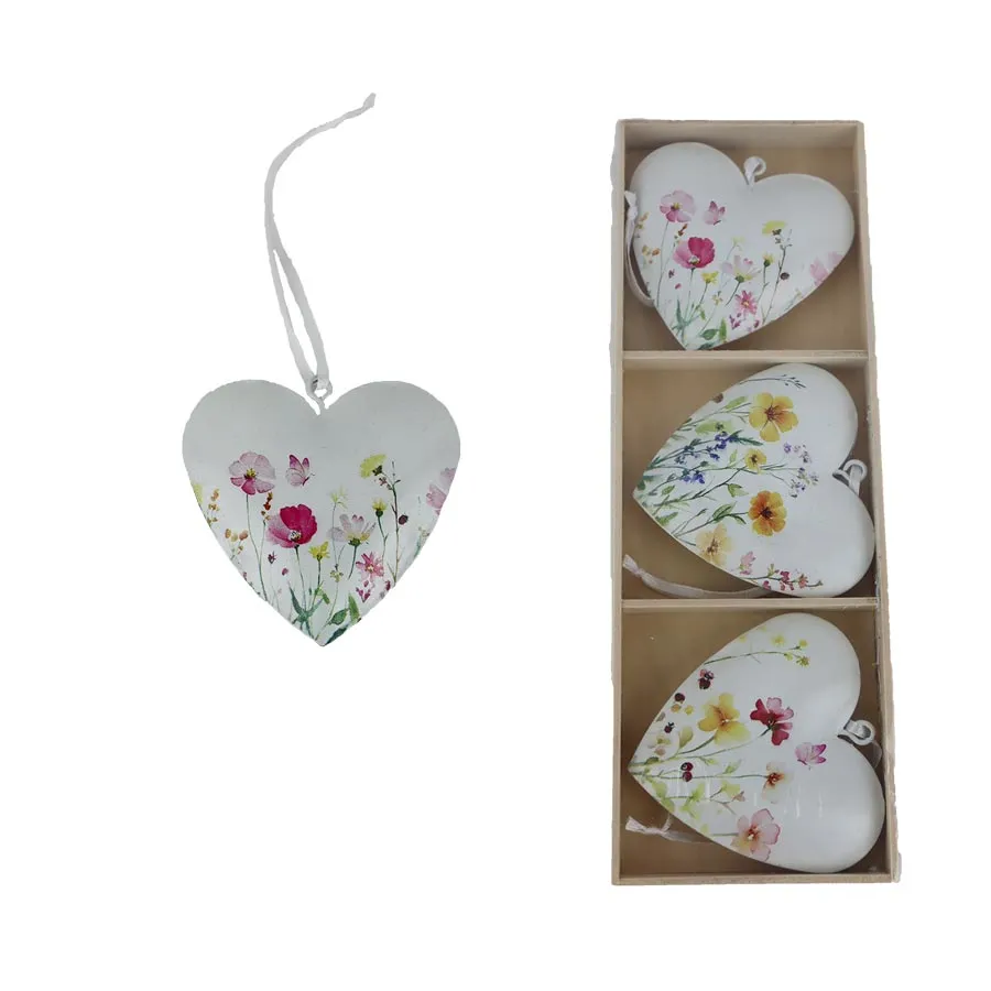 Sada dekoračních srdíček k zavěšení. Sada obsahuje 3 srdíčka.