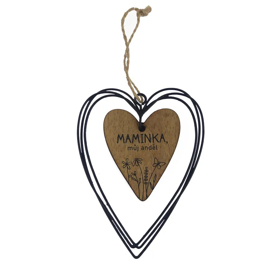 Dekorační srdce k zavěšení s nápisem - MAMINKA MŮJ ANDĚL.