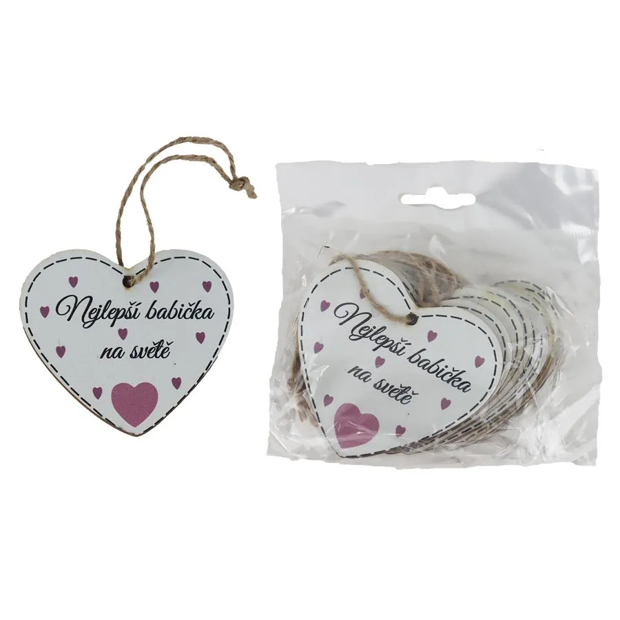 Srdce k zavěšení s nápisem Nejlepší babička na světě, 10 ks D7871
