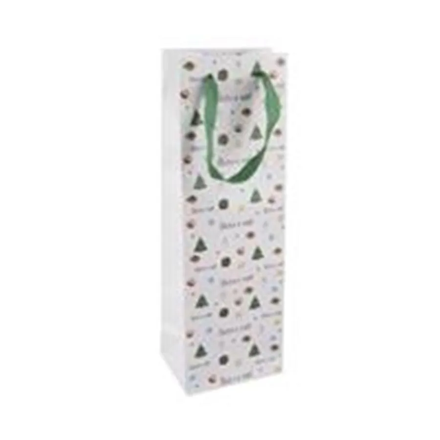 Taška papír dárková na víno Šťastné a veselé 12x8,5x36 cm