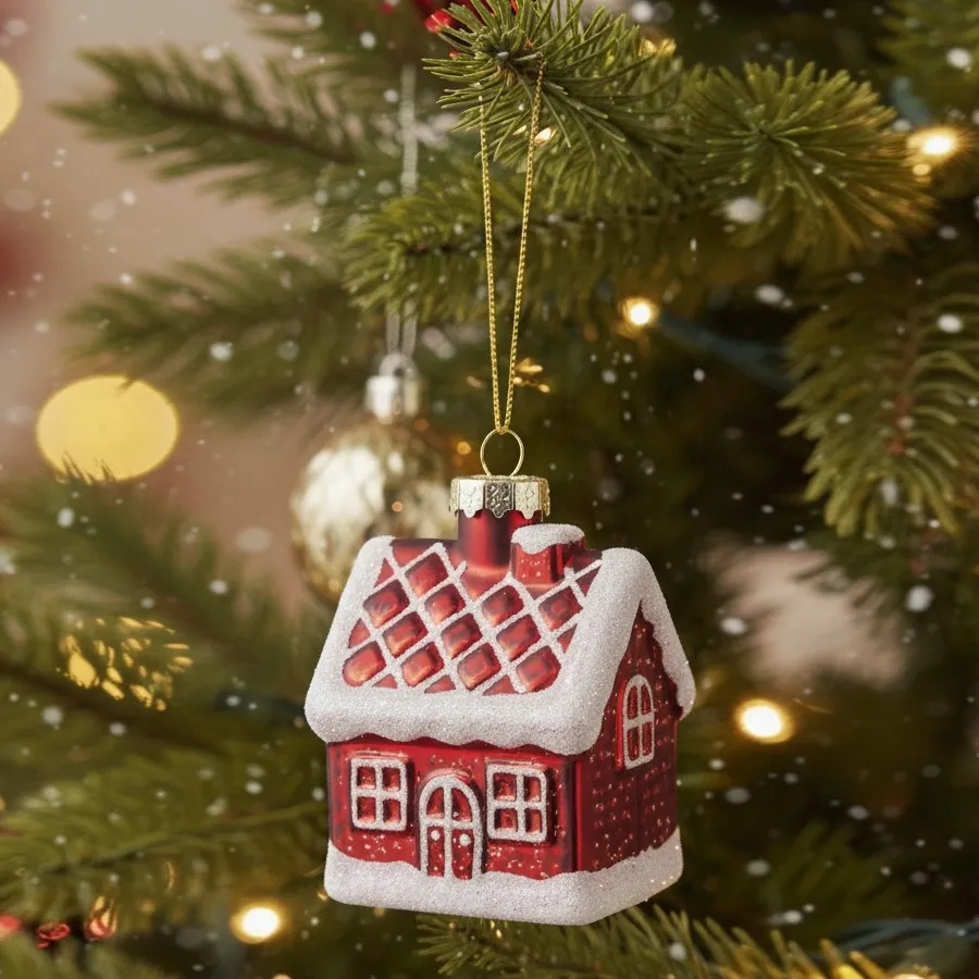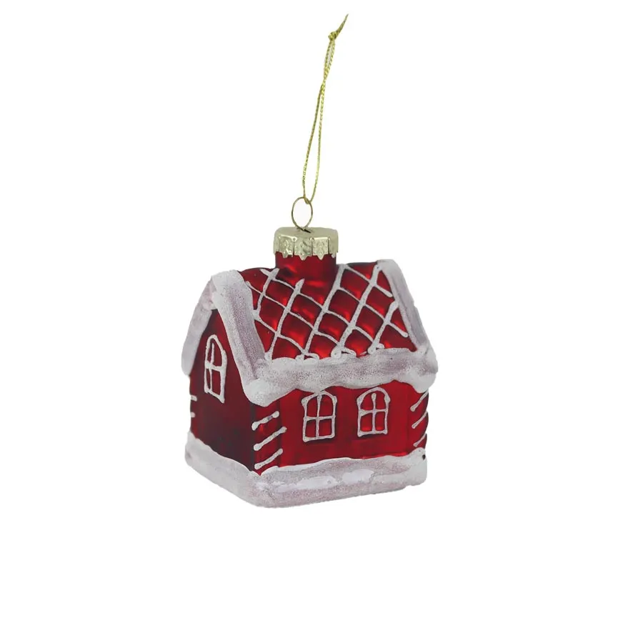 Skleněná vánoční ozdoba domeček.