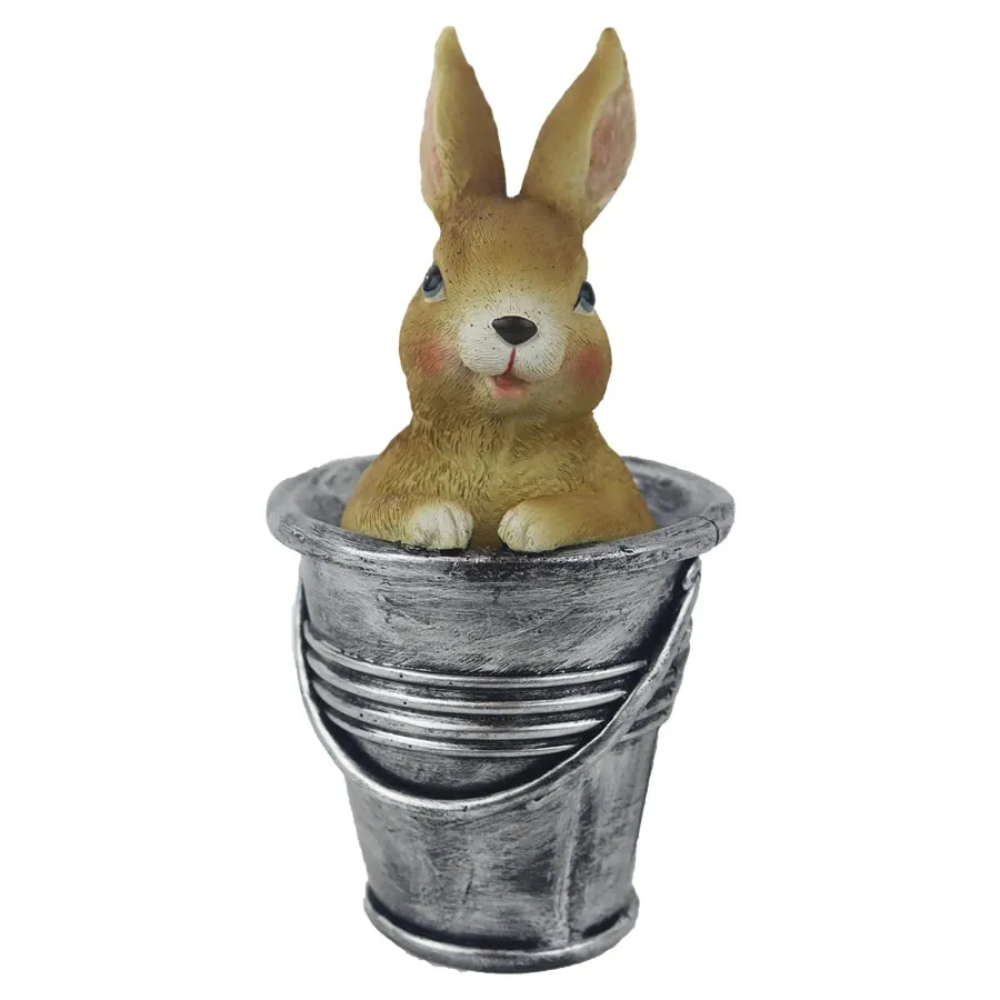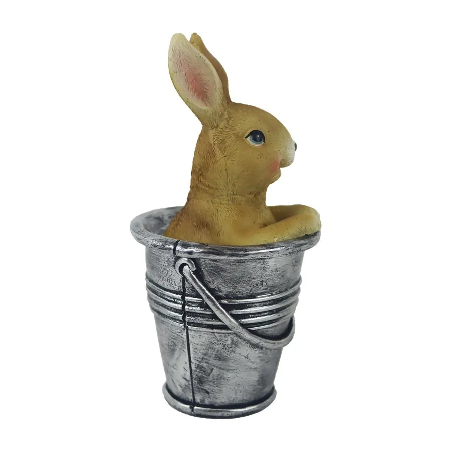 Velikonoční dekorace zajíček ve kbelíku.