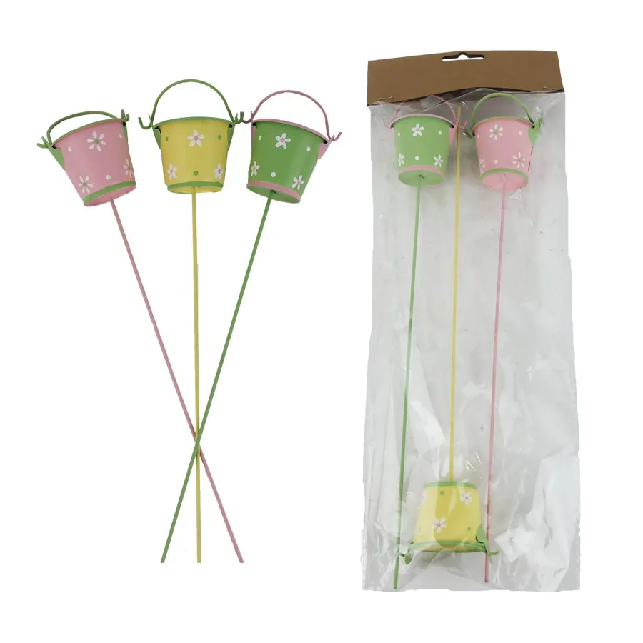Sada dekoračních zápichů kbelík. Sada obsahuje 3 zápichy. Zápich má rozměry : 6 x 4,5 cm, výšku 4,5 cm, celková délka zápichu 30,5 cm.