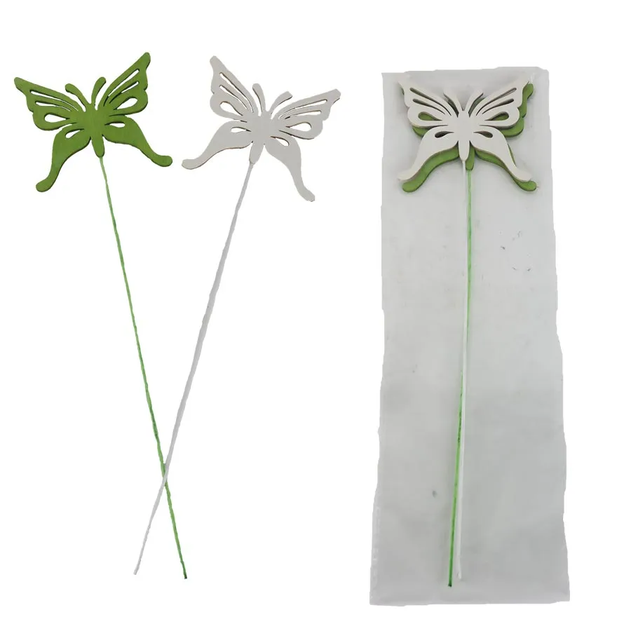 Sada zápichů motýl. Sada obsahuje 2 zápichy. Zápich má rozměry : 8 x 6,6 cm, tloušťku 0,2 cm, celková délka zápichu 27 cm.