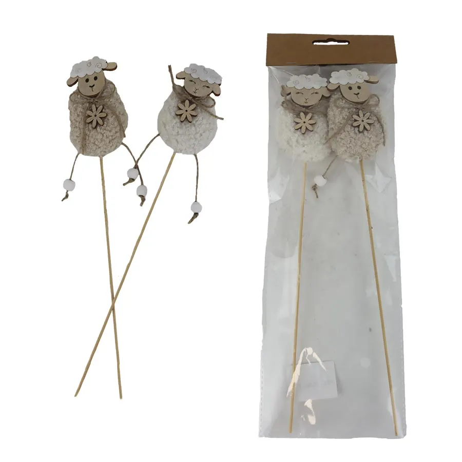 Sada dekoračních zápichů ovečka. Sada obsahuje 2 zápichy. Zápich má rozměry : 6 x 3 cm, výšku 9 cm, celková délka zápichu 32 cm.