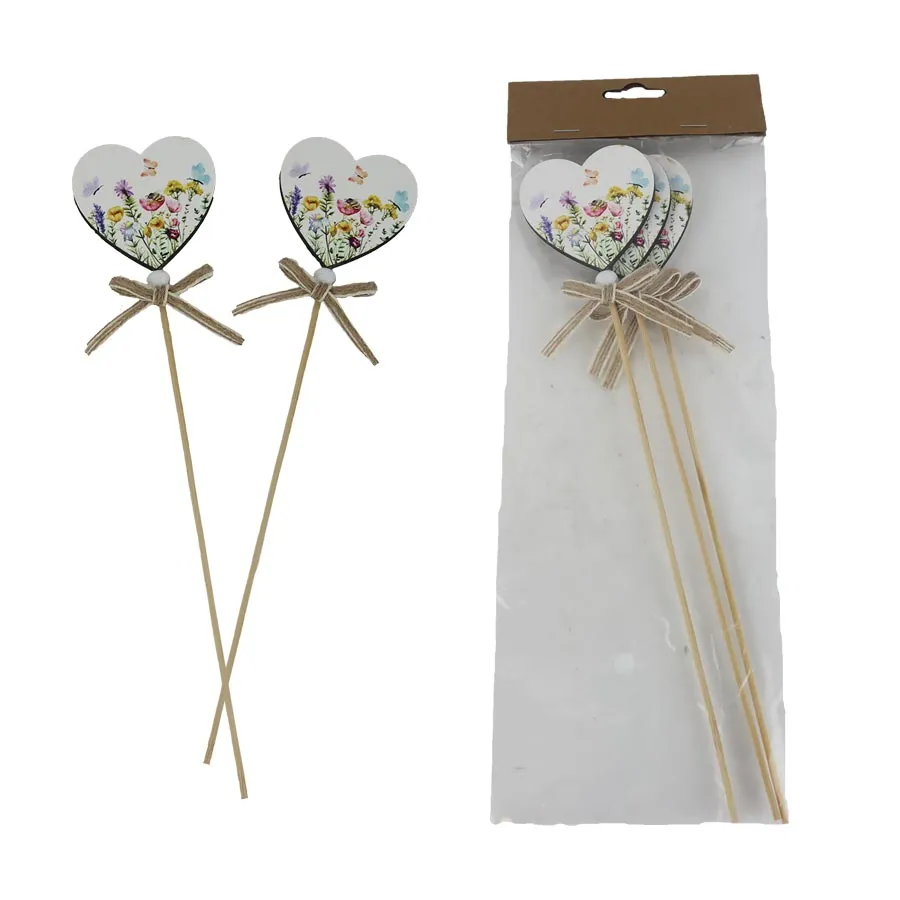 Sada dekoračních zápichů srdce. Sada obsahuje 3 zápichy. Zápich má rozměry : 6 x 0,5 cm, výšku 5,6 cm, celková délka zápichu 29 cm.