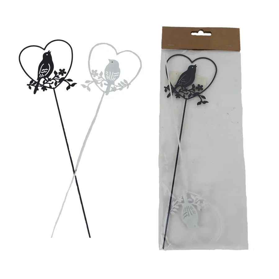 Sada dekoračních zápichů srdce s ptáčkem. Sada obsahuje 2 zápichy. Zápich má rozměry : 7,5 x 7,5 cm, tloušťku 0,2 cm, celková délka zápichu 28 cm.